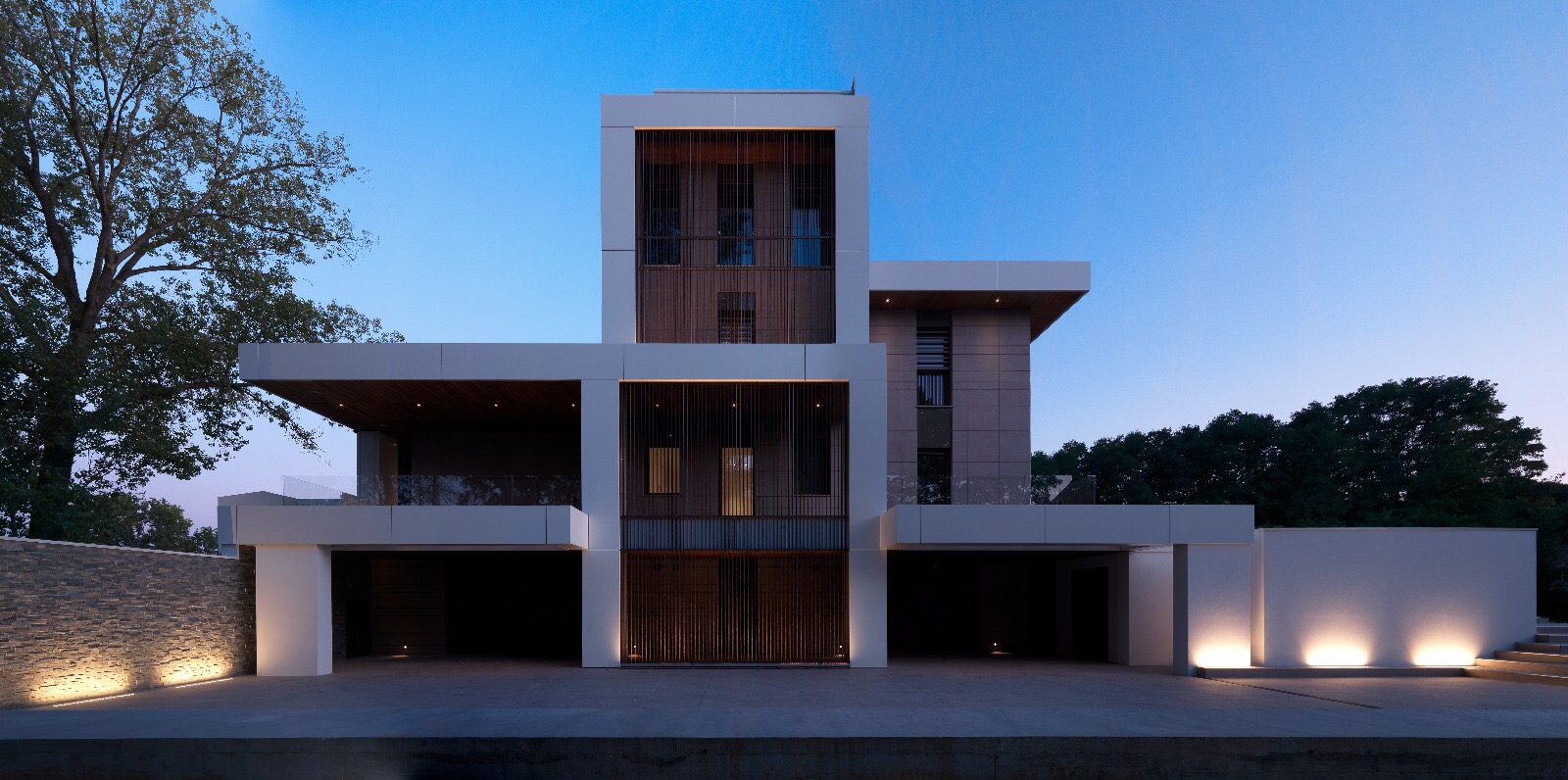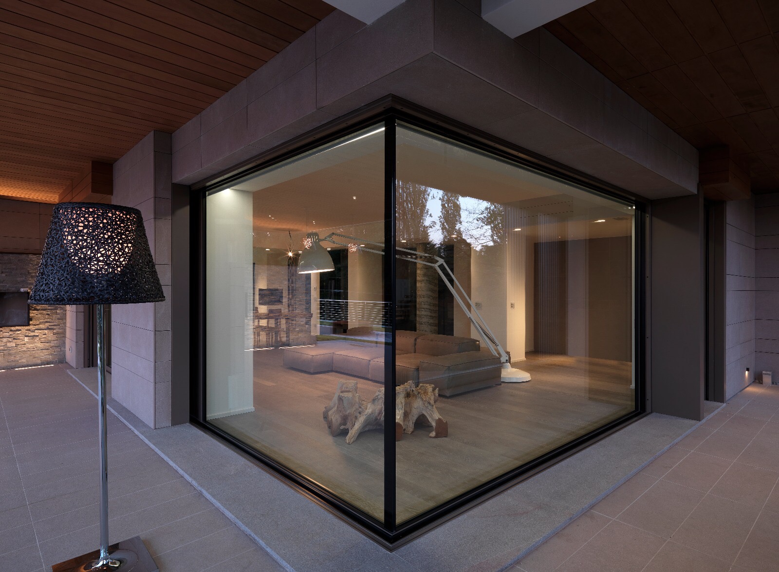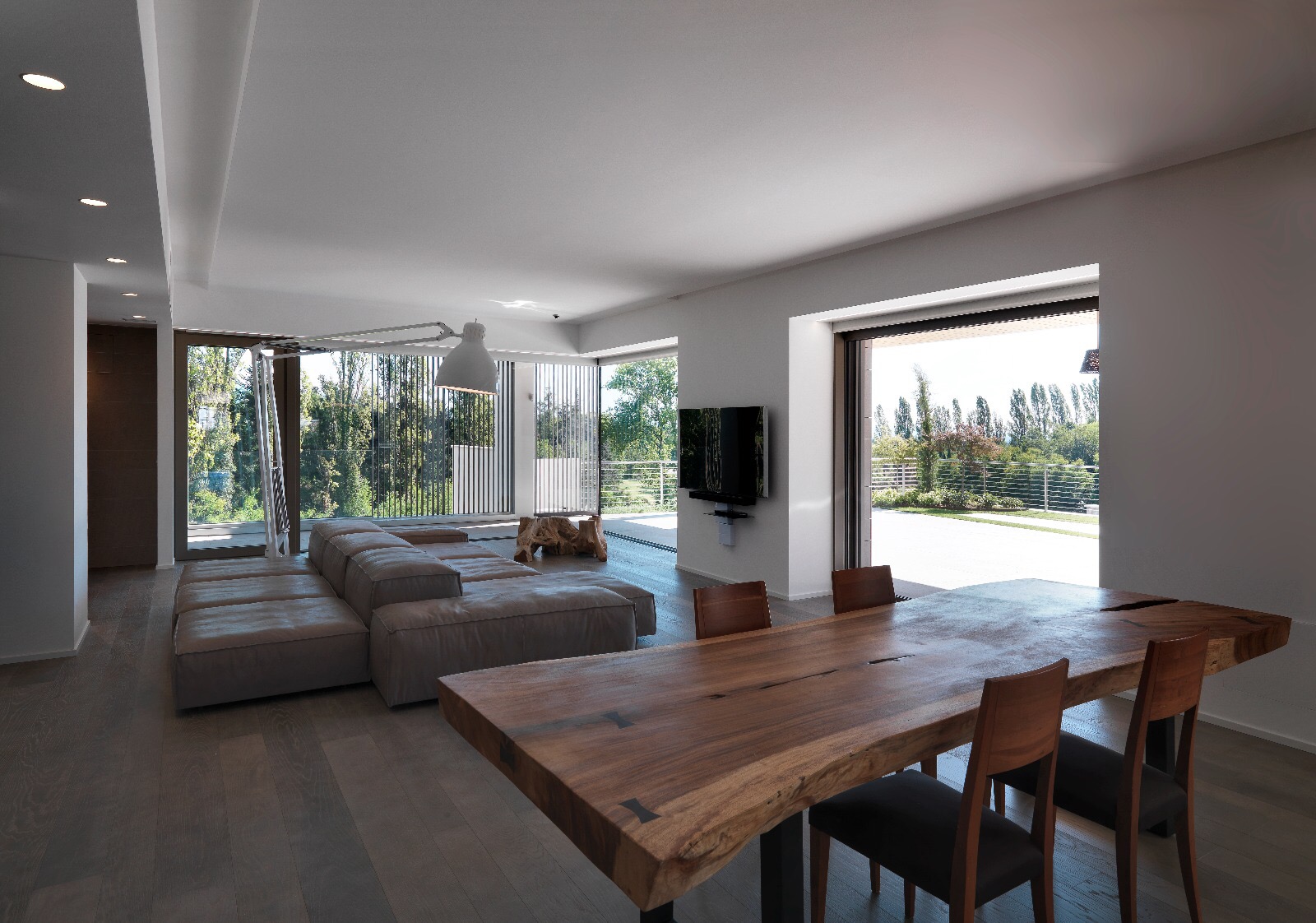 Spazi modulari ed elementi di continuità tra interni ed esterni caratterizzano questa splendida villa immersa nel verde, arredata con materiali che contribuiscono a creare una splendida luce nelle sue stanze eleganti e di design.